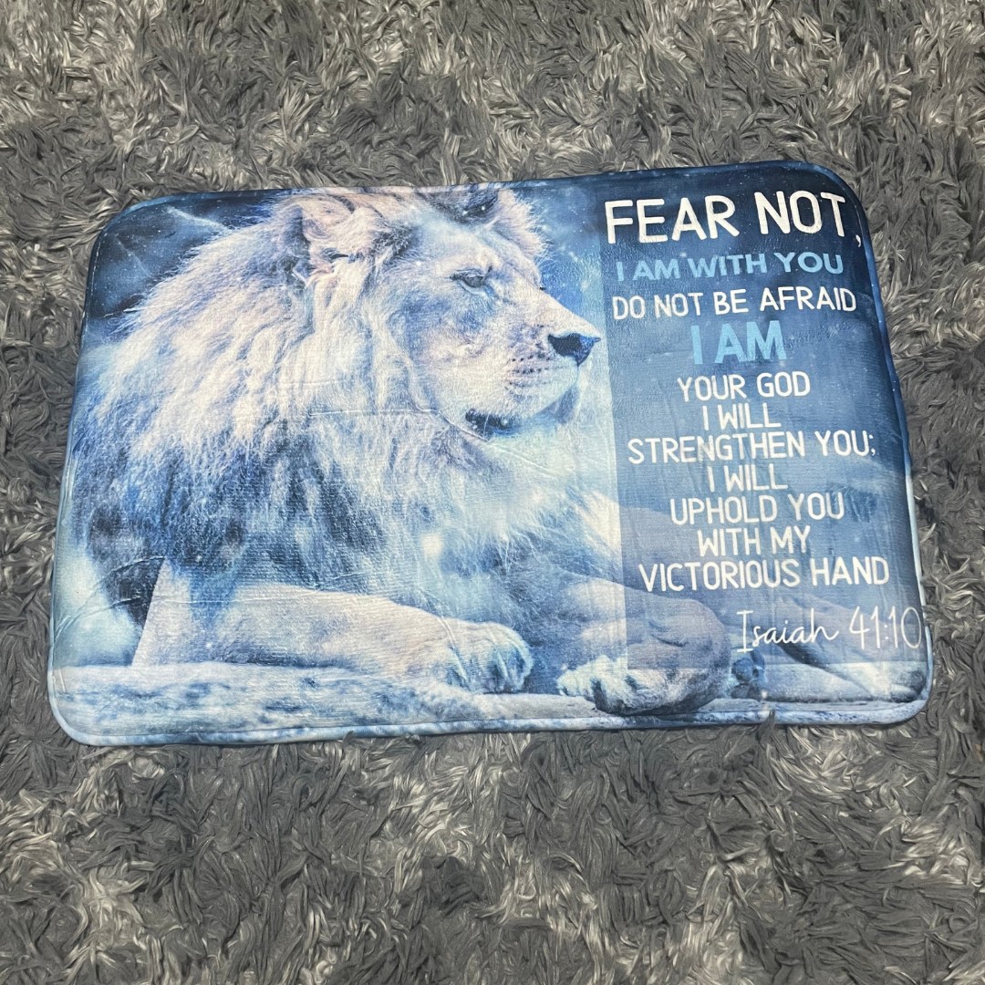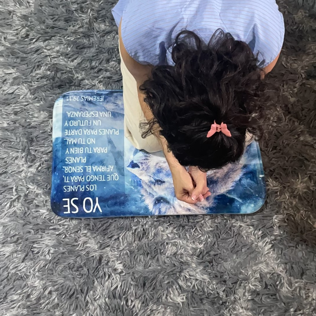 Measuring 16″ x 24″ inches, EasyPray Mat offers a comfortable and spacious surface for kneeling and deepening your spiritual connection. EasyPray Mat is adorned with powerful Bible verse, accompanied by a striking image of the Lion of Judah.
