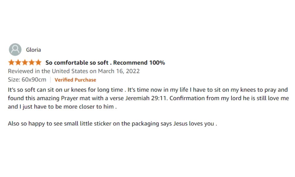 Reviews ⭐⭐⭐⭐⭐⭐ Discover the experiences and opinions of those who have already incorporated EasyPray Mat into their daily journey. Discover